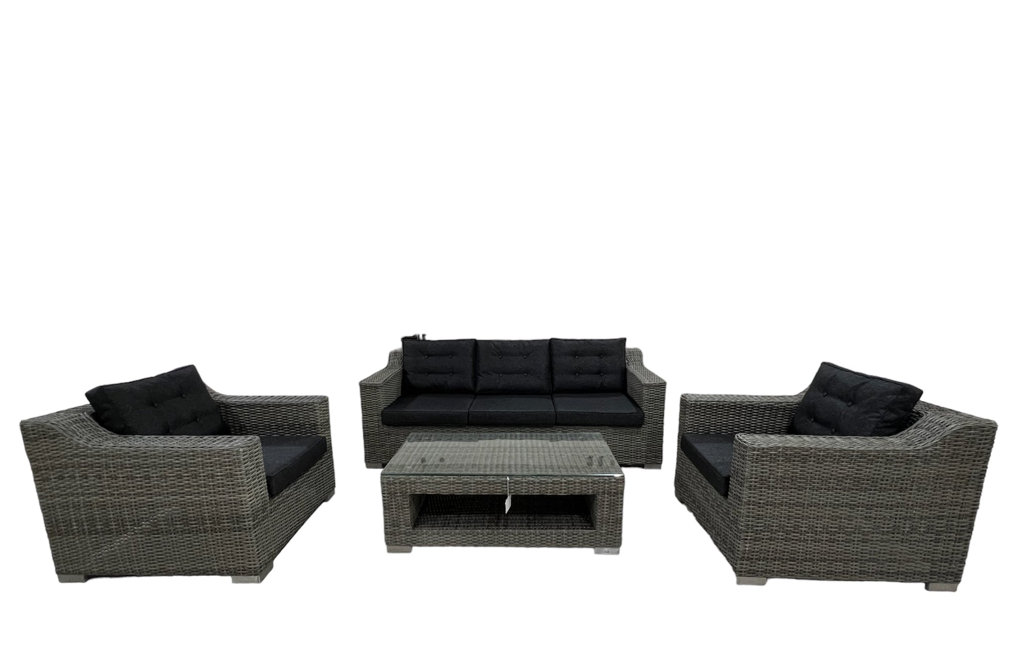 | Colour | Grey wicker with dark grey cushion covers |