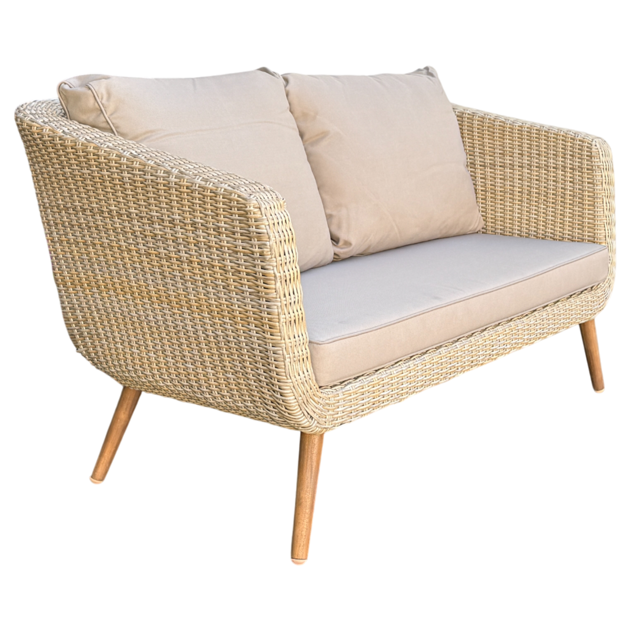 Transform your patio into a relaxing outdoor retreat with the Vermont 4‑Piece Outdoor Lounge Set. Crafted with weather‑resistant acacia timber legs, UV‑protected wicker, and plush quick‑dry cushions, this elegant set is designed for comfort, durability, and effortless style.
